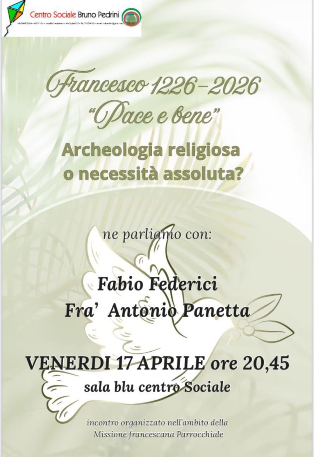 Saranno giornate di preghiera, di ascolto della Parola di Dio, di fraternità sulle orme del Santo di Assisi, dall’11 al 26 aprile, insieme ai Fratelli e Sorelle di San Francesco (una loro comunità vive a Monteveglio in Abbazia)